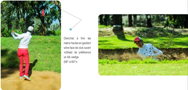 Cherchez à inir les mains hautes en gardant votre face de club ouvert «Utilisez de préférence un lob wedge (58° à 60°)»