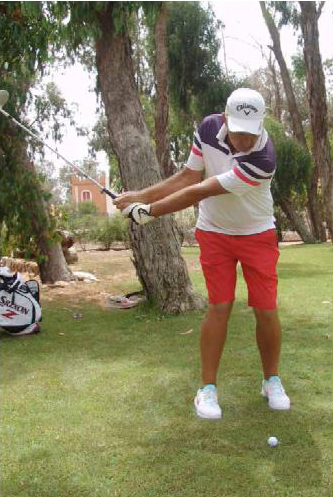 L’objectif est d’avoir une trajectoire plutôt tendue, avec plus de backspin. Attention donc à ne pas refermer la face de club dans la traversée. C’est une traversée rapide et en tournant qui aide à garder le contrôle des mains