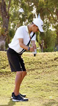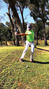 La tête de club balaie le sol. Même après l’impact, la tête de club continue à longer le sol. Il est impératif de bien conserver les angles de départ jusqu’à la fin du geste.